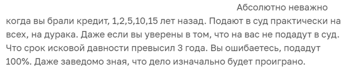 Автор этого отклика, кстати, в итоге выиграл суд, воспользовавшись истечением срока исковой давности.